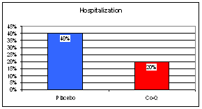 Keeping you out of the hospital seems like a good idea to me (after all, in the hospital you will not be permitted to take Co-Q10). Let's see what affect CoQ supplementation has on this parameter of medical benefit in a large group of patients..
