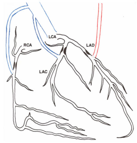usually the left anterior descending (LAD), "bypassing" the blockage.