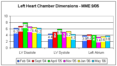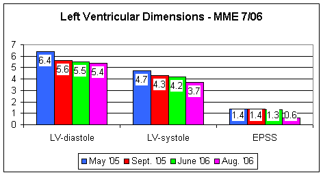 | 3/06 | LVd 5.8 with a normal ejection fraction |