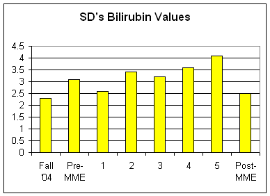 A packed red cell study demonstrated the presence of Cadmium, Lead, and Mercury in SH's system, not a surprise given her high blood pressure. We knew that MME could not reroute the piping in SH's heart, but I felt that it just might strengthen the chronically strained muscle cells in SH's right heart, "turning back the clock" a little with respect to the progressive right heart damage occurring on the basis of the congenital shunt lesion. I did feel that MME would be of value to SH's left heart, strained by run-of-the-mill hypertensive heart disease. It appears that I was right.