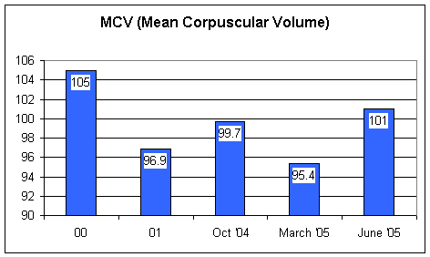 HR took several courses of moderate dose oral DMSA; with this her rhythm symptoms didn't resolve, but they did quiet down. We observed that HR's MCV, a component of her CBC (complete blood count) could be used a biomarker of her toxicity status. Her MCV (mean corpuscular volume) was abnormally high, indicating that HR's red blood cells were abnormally large. Low thyroid status and B12 deficiency are associated with an increased MCV, but these were not issues with HR. The thinking here is that Mercury and other toxins interferes with the production of Hemoglobin and other components of the red cells, causing them to vary in size and be abnormally large. With DMSA therapy in 2000, HR's MCV fell from 105 to 96.9 (normal is < 101). HR's sensitivity to prescription medications might also be related to metal overload. If the enzymes responsible for drug metabolism and detoxification are poisoned by Mercury, it makes sense that she would be sensitive to them. Getting HR to take DMSA, or any other drug for that matter, was a challenge. She didn't want to take DMSA long term. The only drug she would take for her heart was Digoxin,. HR took Digoxin, and an extensive nutritional program, and this kept HR out of trouble - for a while.