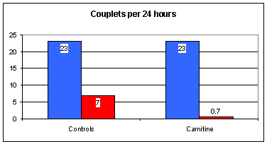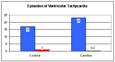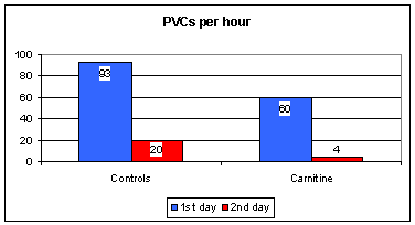 All measures of cardiac arrhythmia were less in the carnitine treated patients. Carnitine administration blunts acidosis, a condition that may initiate or aggravate arrhythmia, and by preserving energy metabolism oxidative stress in blunted, and thus another whip is sheathed. Smaller heart attacks are associated with a lower tendency to arrhythmia, and carnitine certainly limits the damage done following an interruption in oxygen supply to the heart.