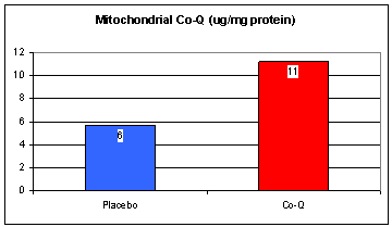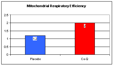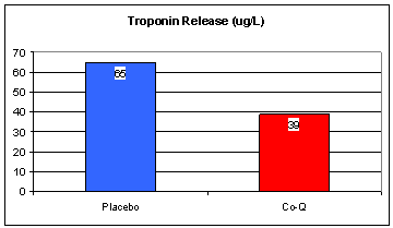 Mitochondrial respiratory efficiency, the ability of the mitochondria to generate ATP after 30 minutes of ischemia (oxygen deficiency, as occurs during on-pump CABG), was improved with CoQ supplementation. Troponin is a "cardiac enzyme", a protein found only in the heart, that is released in to the circulation when heart cells die. A rise in troponin is used as a criteria in the diagnosis of heart attack. Some heart muscle damage occurs in the course of cardiac surgery - it is inevitable and usually minor - but less damage occurred in the CoQ10 treated patients.