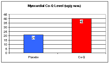One hundred and twenty two patients scheduled for coronary artery bypass surgery (CABG) were randomized to receive CoQ10 at a dose of 300 mg/day or placebo over two weeks immediately preceding their procedure. Heart muscle samples were obtained at the time of surgery.