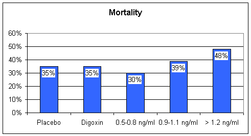 Digoxin - William Withering in the 1700s found that tea brewed from the Foxglove plant was of therapeutic value in the treatment of heart failure, then termed "dropsy". Withering also observed that too much Foxglove tea killed the patient. The active chemical in Foxglove is digitalis, referred to as Digoxin (trade name Lanoxin). Digoxin increases the "contractility" of the heart muscle; with digoxin on board, the weak, failing heart beats stronger. In patients with atrial fibrillation, a rapid, uncoordinated heart rhythm where the atrial storage chambers no longer beat in rhythm with the ventricular pumping chambers, digoxin will predictably slow the heart rate, decrease the heart's requirement for oxygenated blood, and improve cardiac performance. Digoxin also down-regulates the baroreceptor reflex, and by this mechanism contributes to neuroendocrine blockade. Baroreceptors within the arterial wall sense the forward flow of arterial blood. In heart failure, forward flow is compromised, the baroreceptors are stimulated, and the sympathetic nervous system releases adrenalin and nor-adrenalin. Digoxin blunts this response, sparing the heart from this chemical whipping. Digoxin has a narrow "therapeutic window". Just as Withering observed, a little digoxin is of value to the patient with CHF, but too much is lethal. 15 years ago, when Digoxin and Lasix were the only CHF treatments available, we would often "push Digoxin" too far. Patients would come in with high Digoxin levels, and toxic cardiac rhythms. Emergency pacemaker placement might be required for slow rates, or electrical cardioversion for rapid arrhythmia - I spent many a night dealing with digital toxicity. Dehydration, potassium and magnesium depletion, all side-effects of diuretic therapy, predispose to Digitalis toxicity, and all of our CHF patients were on diuretics at high dose. Now that the newer neuroendocrine blocking agents are available, many physicians have stopped using Digoxin in the treatment of CHF. While all Cardiologists agree that Digoxin is useful to provide heart rate control in the patient with CHF and atrial fibrillation, opinion is divided as to whether Digoxin is useful in CHF alone. A large, multi-center study Digoxin vs. placebo in CHF patients otherwise treated with diuretics and ACEI demonstrated that Digoxin administered at low dose, achieving a blood level of 0.5-0.8 ng/ml (the prior "therapeutic range was > 1.2ng/ml) helped keep patients out of the hospital and had a beneficial effect on mortality. Higher dose (more accurately stated higher blood level) Digoxin therapy decreased hospitalization rate but had now effect on mortality. I will recommend low dose Digoxin to patients with CHF and pump dysfunction if I do not think they are at high risk for Digitalis toxicity, and I will aim for a level between 0.5 and 0.8, but this is not a first line maneuver. If I think that you are at risk for digitalis toxicity (unstable potassium level or fluctuating kidney chemistries) then I will recommend that you not take this agent. The typical dose of Digoxin in CHF is 0.125 mg/day. The cost here is approximately $8/month.