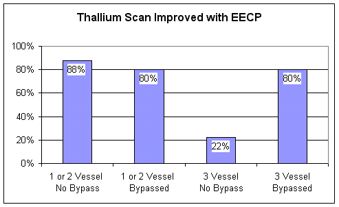 Of the "responders", the 14 patients whose thallium scans improved following EECP, the three year event rate was 15%, and the thallium scan remained improved in 80% of those who remained event free.