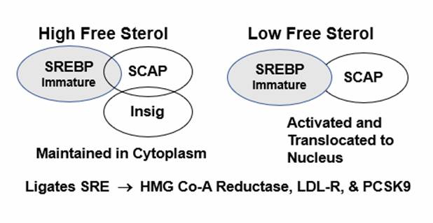 The Insig/SCAP/SREBP/SRE cholesterol thermostat system was not created to make us good statin takers. Rather it was created to ensure that Primitive Man did not become cholesterol deficient when dietary cholesterol intake was limited. Thus, SRE activation (due to low liver intracellular cholesterol) also leads to transcription of more HMG Co-A Reductase (if cholesterol is low, why not make more)?