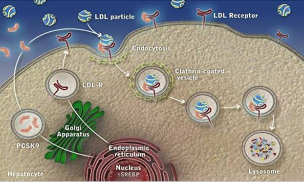 Cholesterol biosynthesis and uptake occurs mainly in the liver, and as Mother Nature doesn’t want the liver to hog all the cholesterol, SRE activation also leads to the generation of PCSK9 (Proprotein Convertase Subtilisin/Kexin type 9), a counterbalancing protein that degrades the hepatic LDL receptor, maintaining serum cholesterol to meet the needs of other cells.