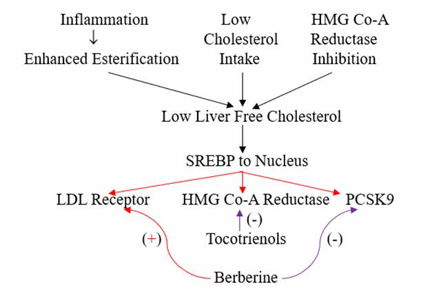 lower inflammation). Thus, Berberine leads to HMG Co-A Reductase
