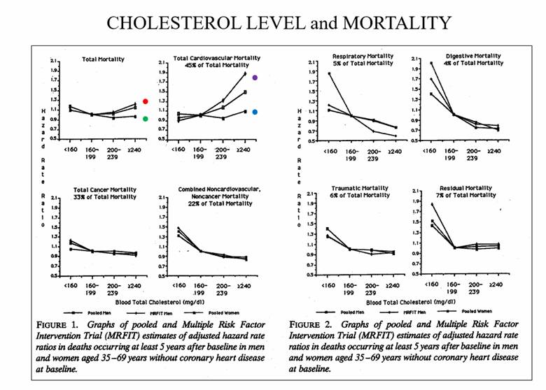 Epidemiologic studies tell us that in healthy individuals, 15-year mortality is lowest with a total cholesterol in the 160-200 range. Above 200 CV mortality rises in men but not in women. Below 160 mortality increases in both genders (particularly suicide, motor vehicle accidents, and cancer death). This data refers to overtly healthy individuals. This data does not mean that we are increasing your risk if we lower cholesterol below 160 in individuals with known CV disease.