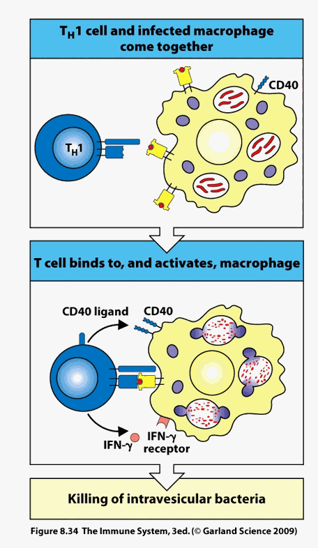 The previously naive T cell bearing a T cell receptor specific for a protein snippet of a microbe (in this example a bacteria or a snippet of oxLDL) has activated and proliferated. Millions if not billions of these activated helper T helper cells are soon swarming the circulation, seeking to help macrophages and other innate defenders phagocytose and kill the invaders (before they can kill us).