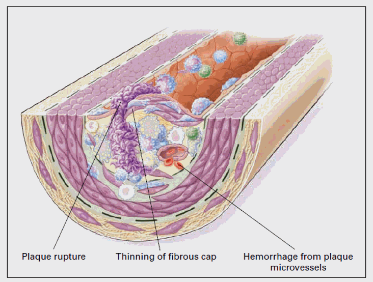 The atheromatous core of a stable plaque is contained by a fibrous cap. In response to dietary/life-style change and/or appropriate pharmaceutical/nutraceutical intervention, ROS/RNS generation will have curtailed, Treg cells will be neutralizing Th1/Th17 activity, and endothelial nitric oxide production may return. This plaque will not progress and it will not activate.