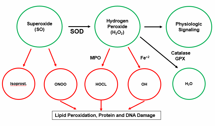 Oxidative Stress occurs when superoxide generation exceeds the ability of our innate enzymatic and diet-derived antioxidant defenses to neutralize this reactive oxygen species (ROS) and its physiologic second messenger H202, allowing the generation of longer-lived and vasculopathic ROS and RNS (reactive nitrogen species). Oxidative stress is the driving force of atherosclerosis, a pathophysiology that we can understand and contain.