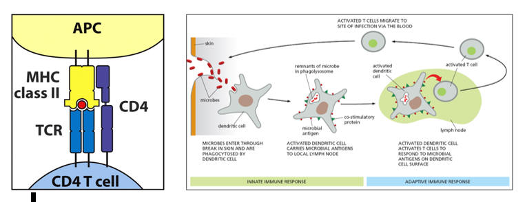 Innate immune cells thus awaken dormant T helper cells by presenting antigenic determinants on an MHC II molecule. What are MHC molecules? What are T cell receptors? How does the acquired immune system activate to legitimate infection, or pathologically to oxidized LDL or troponin?