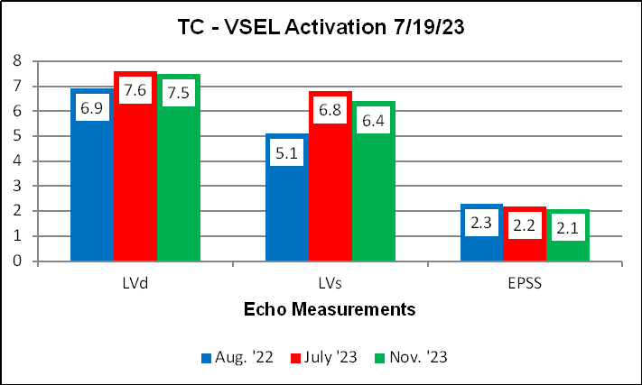 Our plan is to repeat cardiac VSEL activation in early '24, with a follow-up echo four months later. 12/23/23